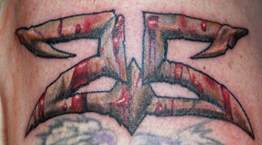 Gwooki had the honor of tattooing the anniversary logo on Dave in San Antonio TX.