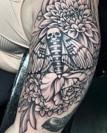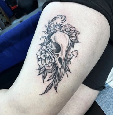 Specializes in floral black and grey, soft and illustrative style. She loves working on natural and mystical inspired pieces.